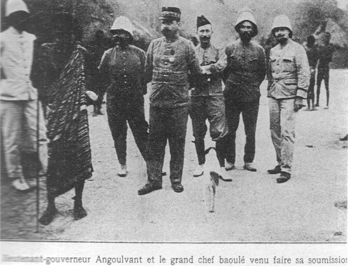 Angoulvant, né le 08 février 1872 en France, dirige la Côte d’Ivoire de 1908 à 1916. Il meurt en octobre 1932 à Paris. Cette seconde phase de conquête avait pour but la conquête de tout le territoire ivoirien et le renforcement de l’autorité française. La conquête engagée par Angoulvant est une conquête atroce qui va se heurter aux résistances de la population. C’est l’exemple de Zokou Gbeuly à Daloa entre 1908 et 1912, du peuple abbey en 1910. Ces résistances étaient malheureusement dispersées et mal coordonnées. L’armement des ivoiriens se limitait à des flèches, des lances, de vieux fusils, ce qui explique, malgré la bonne volonté des populations locales l’avantage des rapports de force en faveur des troupes coloniales.